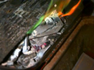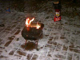 If you look really carefully you can see green flames, and off to your right is a pan full of unburnt lighter fluid. whoohoo.